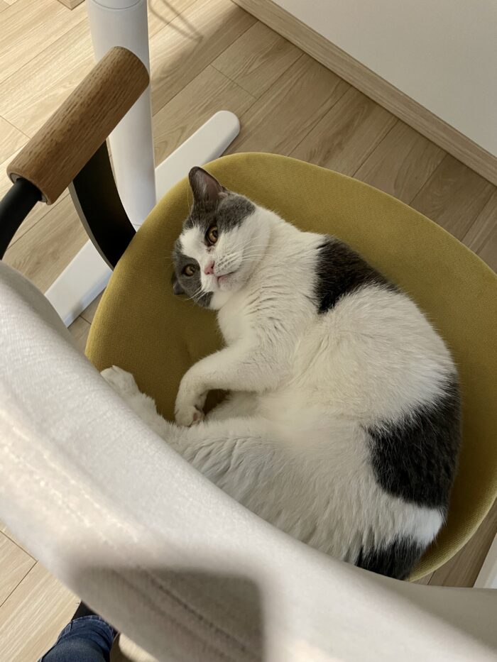 相変わらず独立心旺盛な子で、毎晩ひとりで椅子で寝ています。