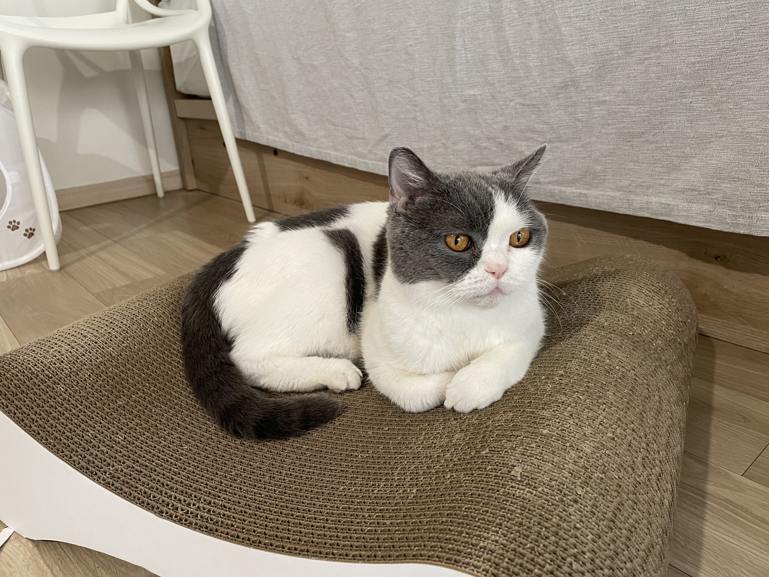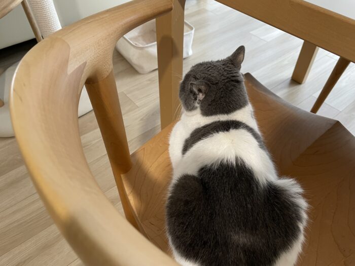 暖かくなるにつれ、ブリ男の中でバーテブラの地位がやや落ち、最近は段ボールの爪研ぎの上か、家具蔵で寝ています。