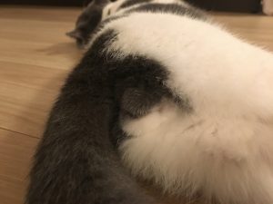 ウチに来た頃はふぐりが目視できなかったのに、立派なモノをぷりぷりさせている。