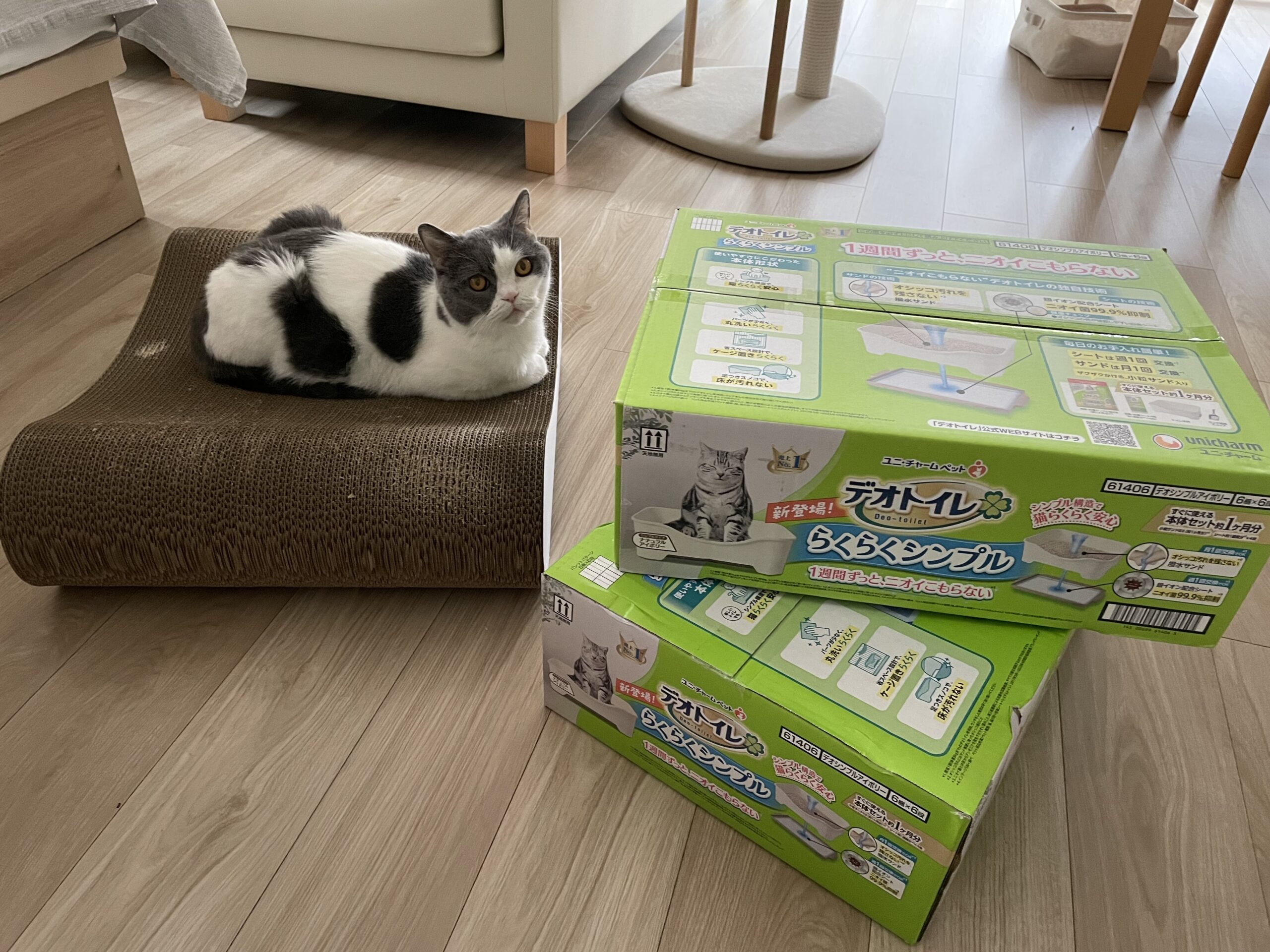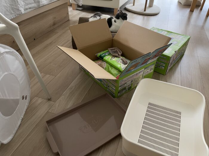 とはいえ砂やシートはウチに来たときからずっとデオトイレを使用していてトラブルはなかったので、自己責任でメーカーをちゃんぽんしていたのでした。