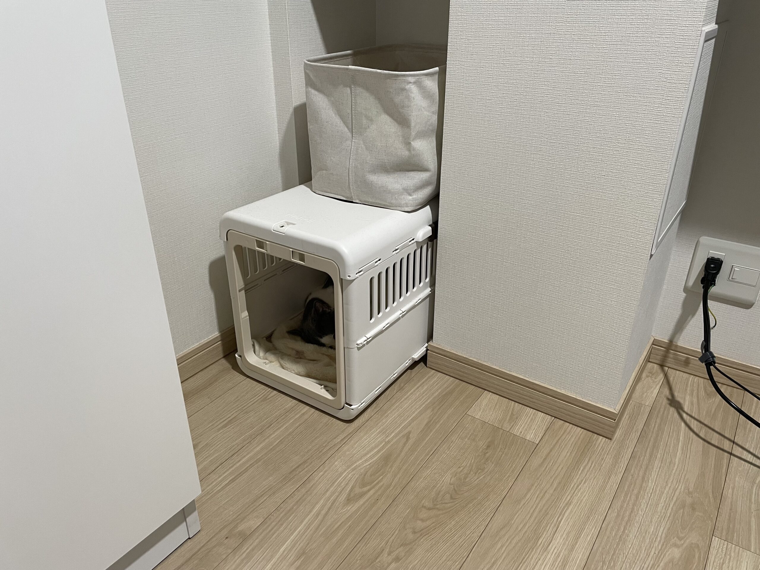 ワタシがバチバチ作業しているとそのうち飽きるようで、床の上の箱の中か、最近はキャリーケースに引きこもるのもおきにいりです。