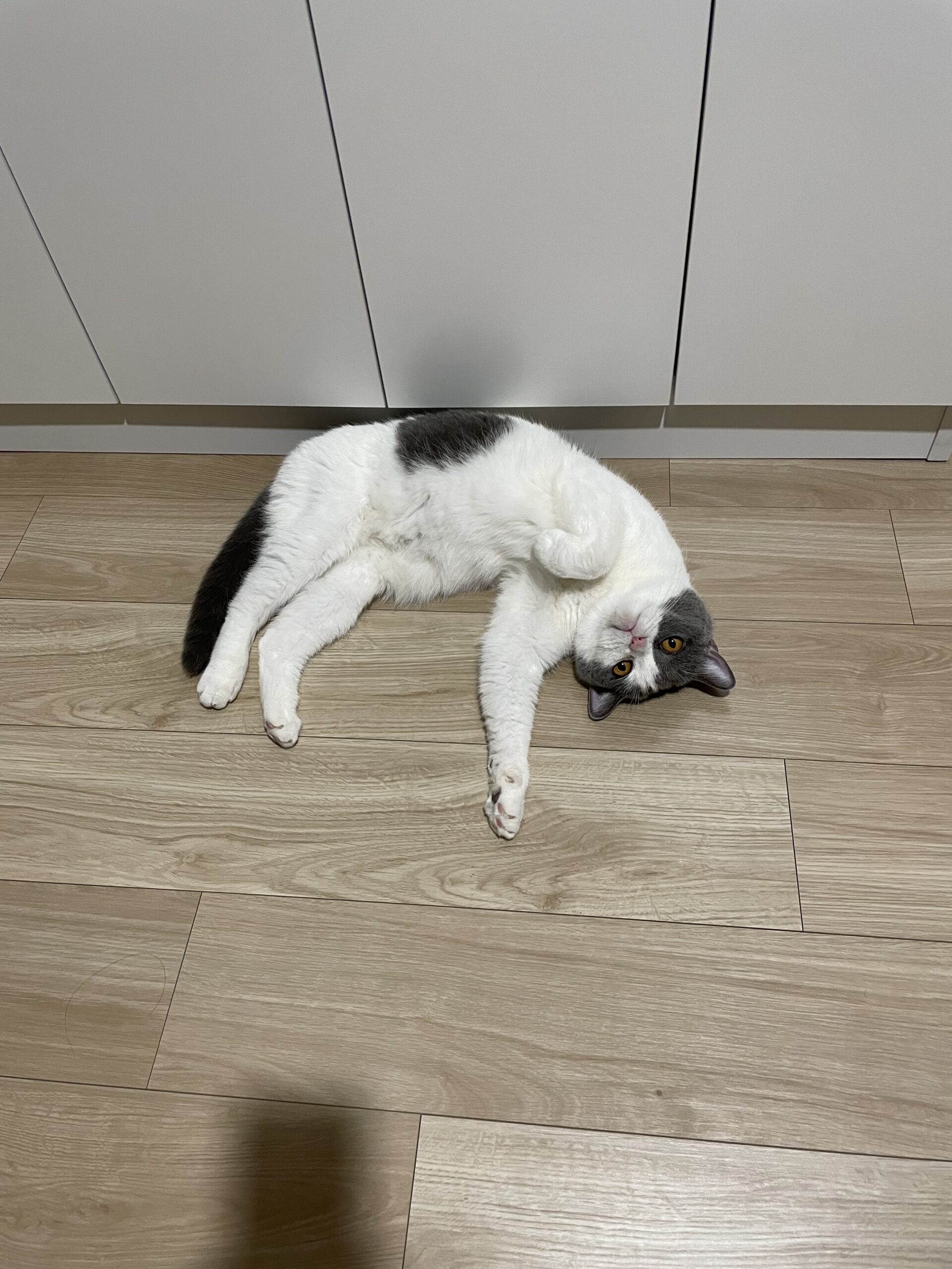 そう考えてブリさんがディスプレイの真ん前でまったりしているときは上下させないようにしていたのですが、そうはいっても腰には限界があるじゃないですか。