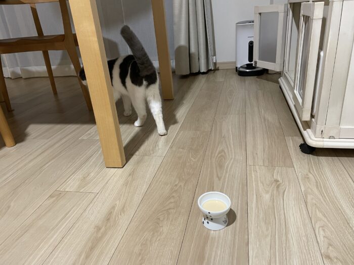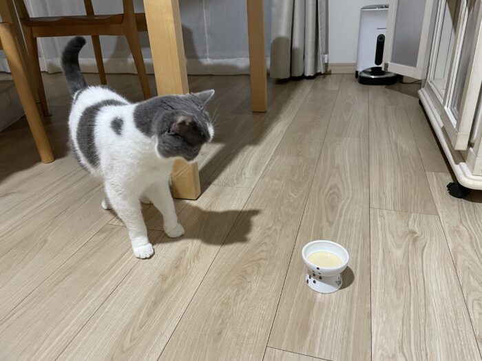 ムースにお湯を足してほぼ液体みたいなウェットフードはぺろりと平らげるのに。