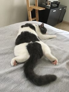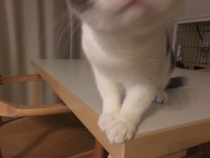 いつもは机の上に乗って、「あー、もうデカい生き物、俺を放っておくなんて信じらんない! 絶対俺を構った方が楽しいのに。なんかいっつも変なモノ食べてるしさ。あー、やだやだ」という顔をしてじっとり睨んできます。