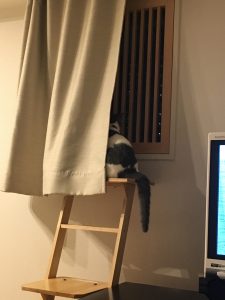 いつもは机の上に乗って、「あー、もうデカい生き物、俺を放っておくなんて信じらんない! 絶対俺を構った方が楽しいのに。なんかいっつも変なモノ食べてるしさ。あー、やだやだ」という顔をしてじっとり睨んできます。