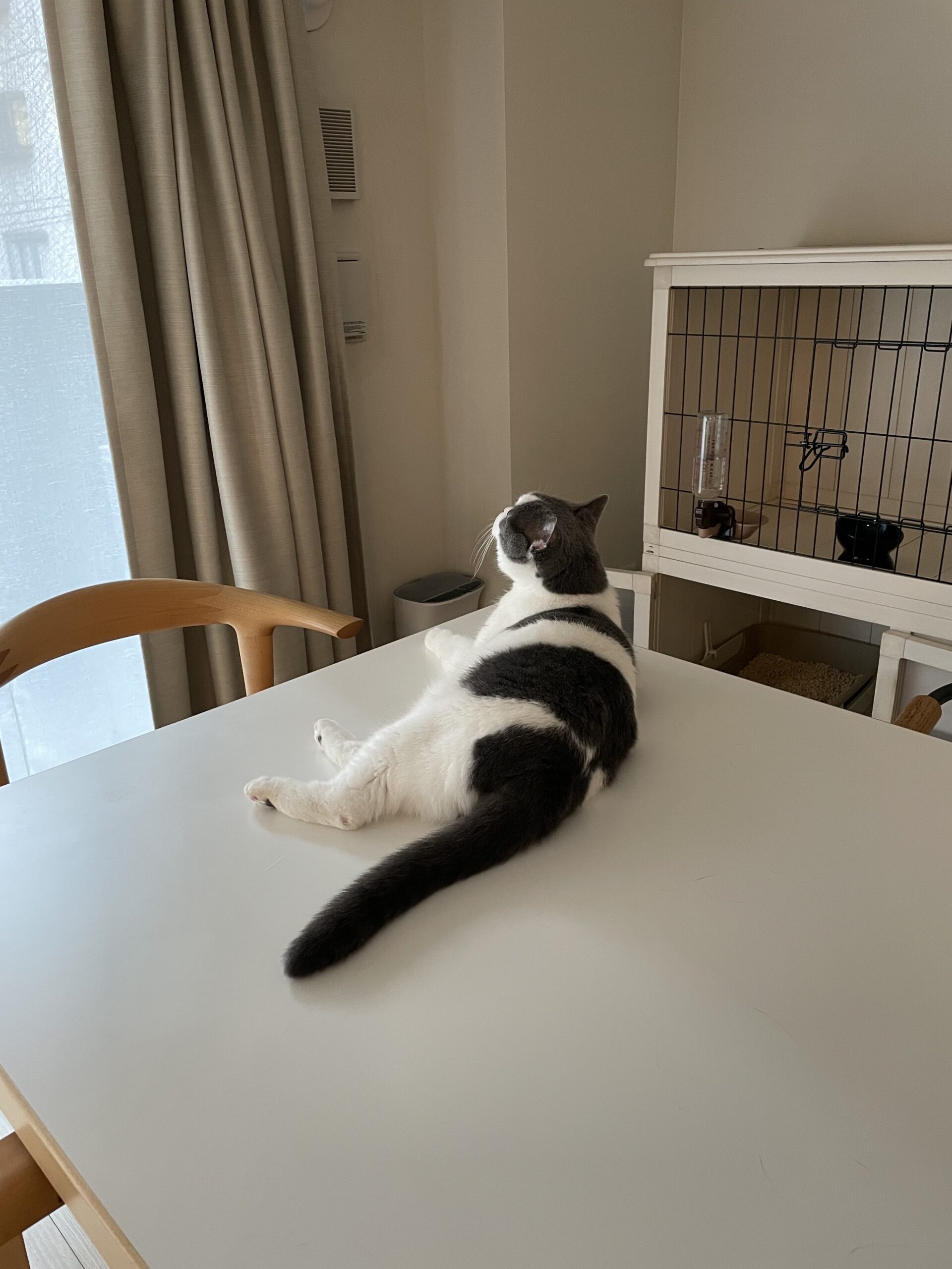 ワタシが午前中に用事を済ませて帰宅し、夕食まで間があるからウエットフードとカリカリをちょっと出してやり、ワタシもオヤツを食べていたときです。