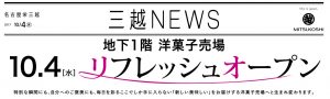 が、名古屋栄三越の洋菓子店売り場が2017年10月4日にリニューアルし、名古屋のケーキ事情に新風が吹き込みました。