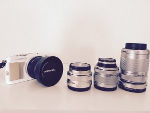右から40-150mm F4.0-5.6、14-42mm F3.5-5.6、17mm F1.8、本体にくっついているのが25mm F1.8です。
