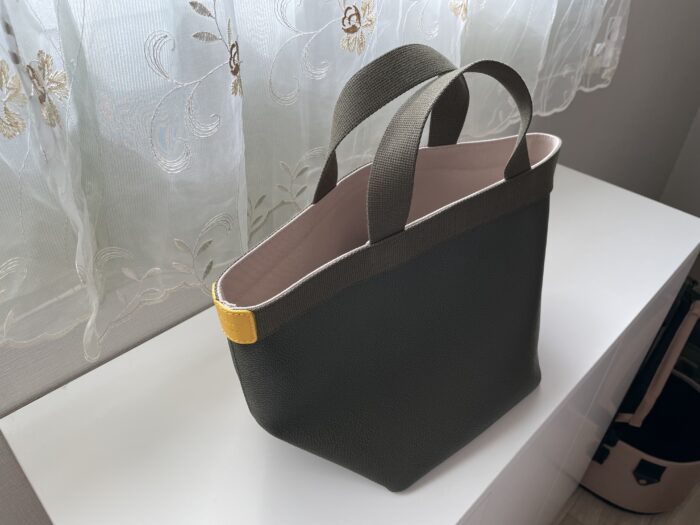 落ち着いたマスティックの本体に、可愛いジョーヌのハンドルを合わせて、ルージュのタグでアクセント。