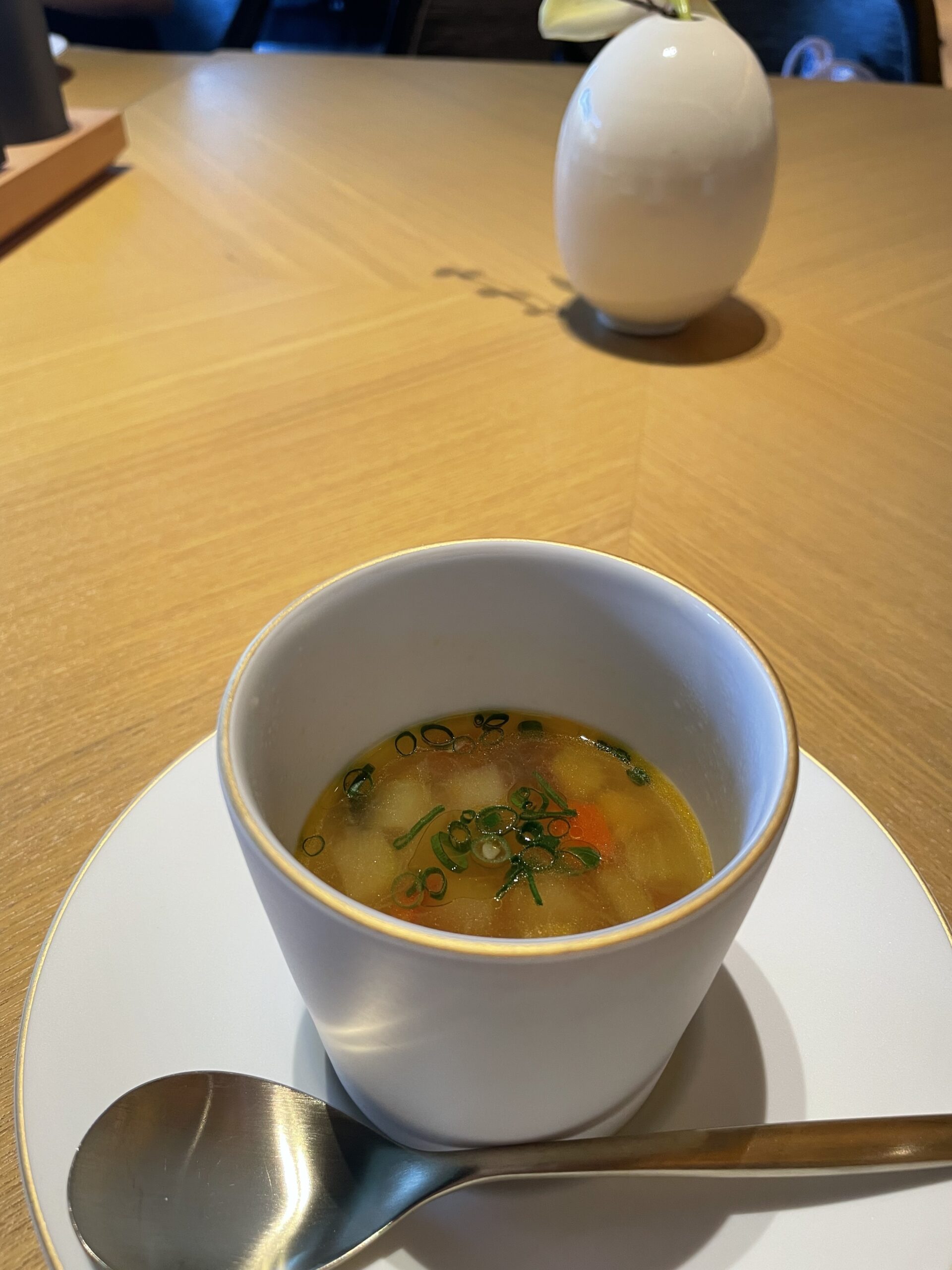 地元の野菜がたっぷり入った優しいコンソメスープです。