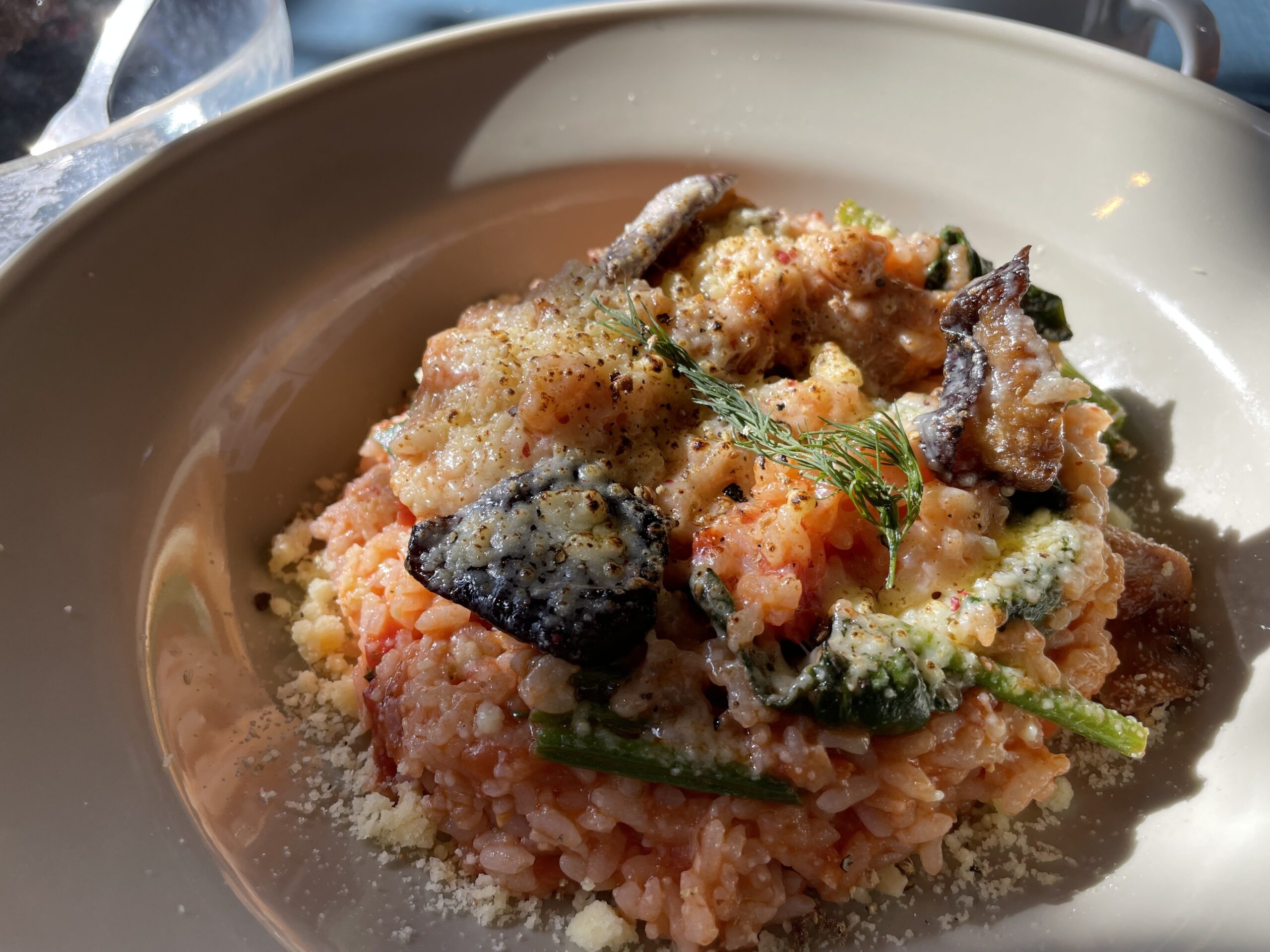 パスタが美味しいと言われましたが、チーズに惹かれてトマトと茄子のチーズリゾットに。