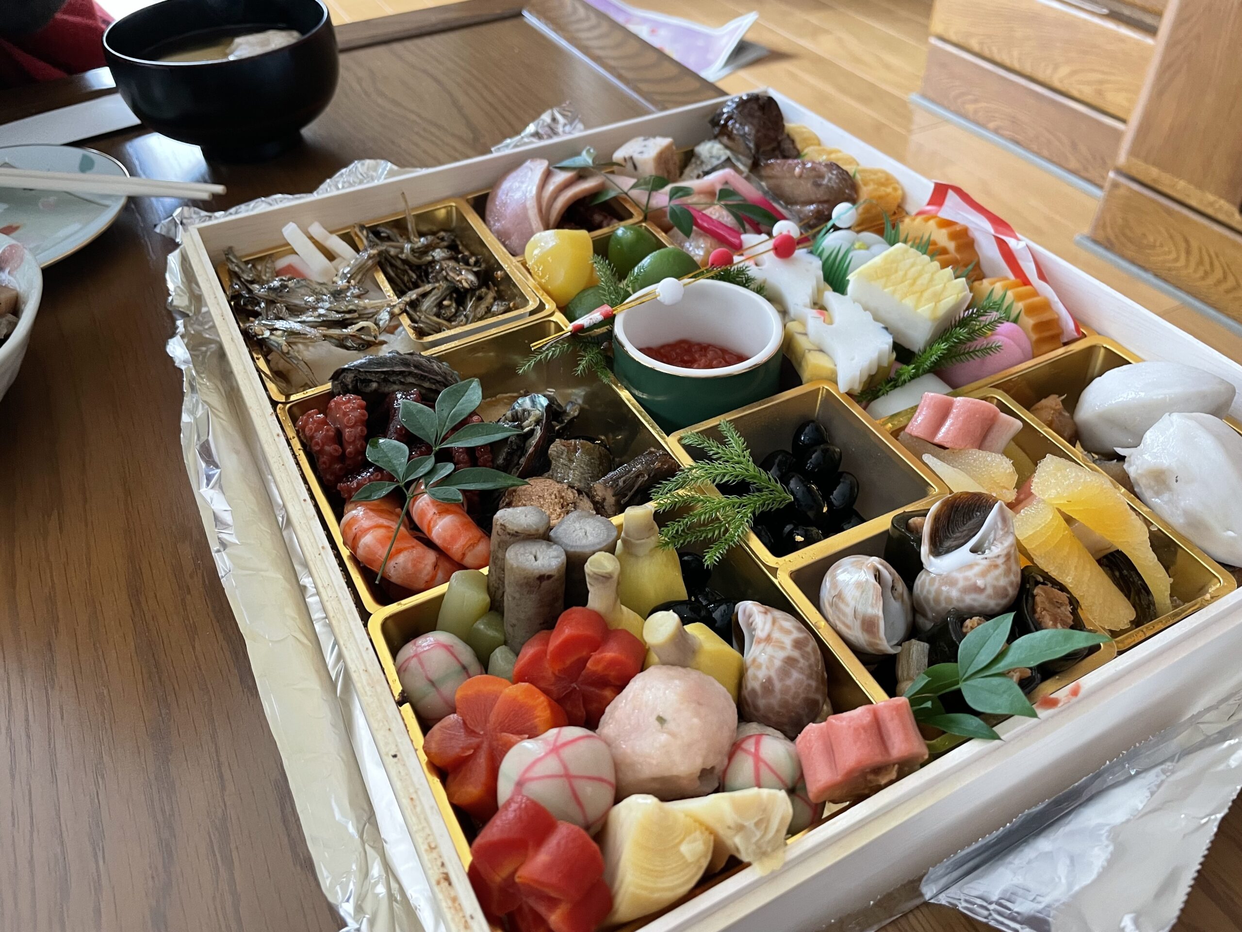昔ながらの保存第一なごってごてに濃い味つけのお節というわけではなく、煮物なんかはお上品で薄味です。
