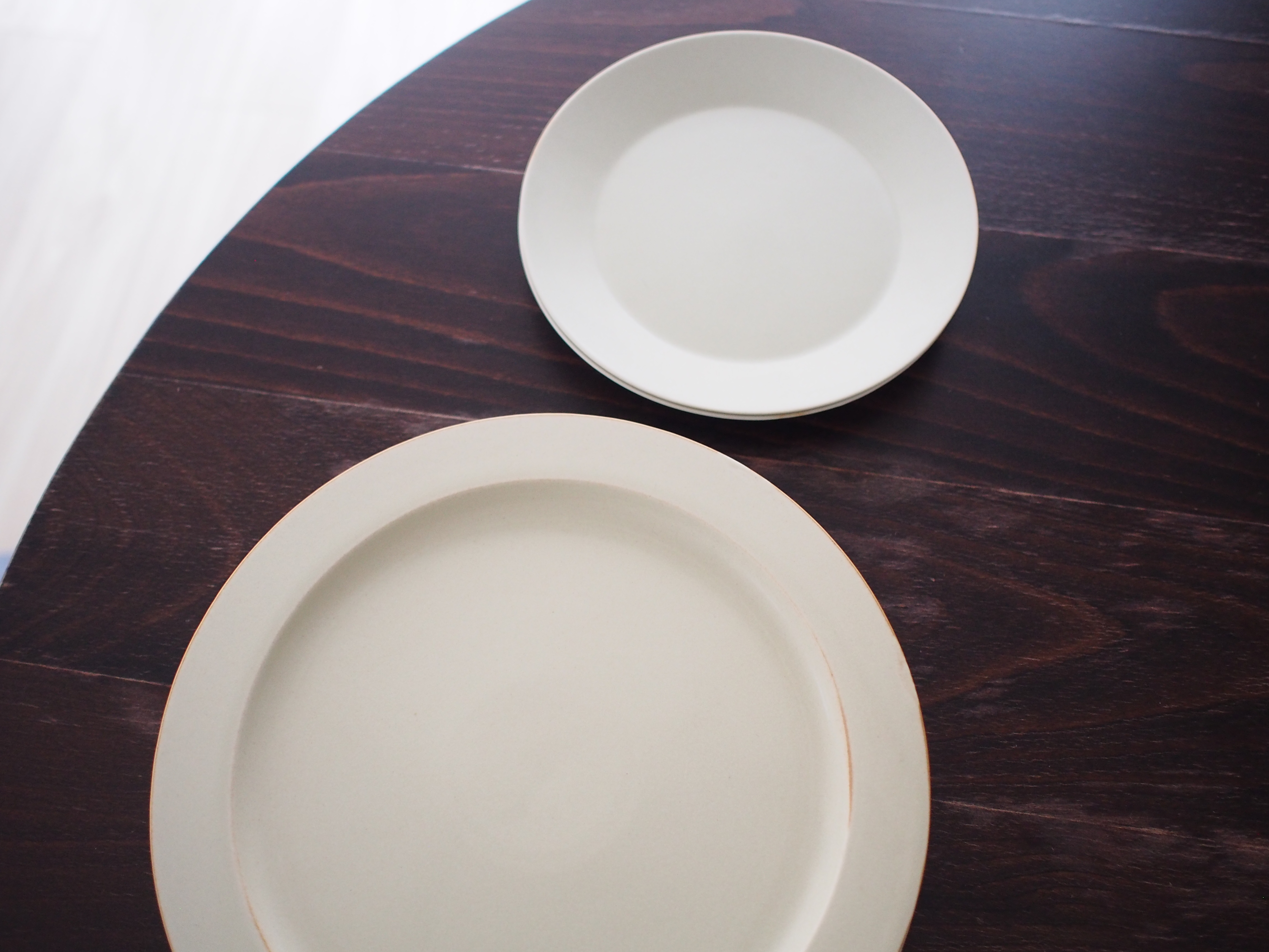 (今回買った皿は白というかベージュですね。何か落ち着くと思ったら、カーテンの色合いと似てました…。)