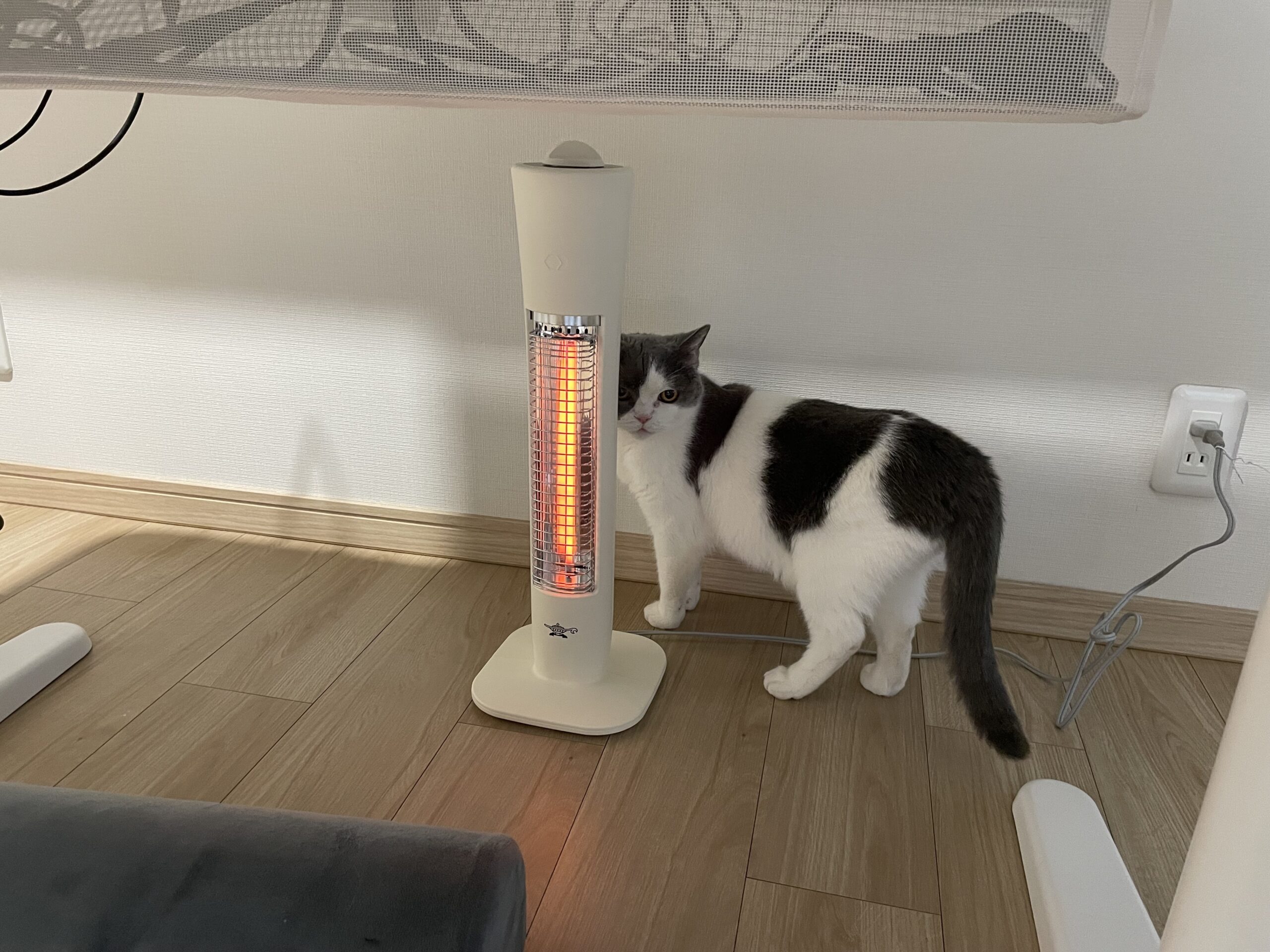 あいつ、こんなデカいヒーターがあったら絶対乗ろうとするからな。