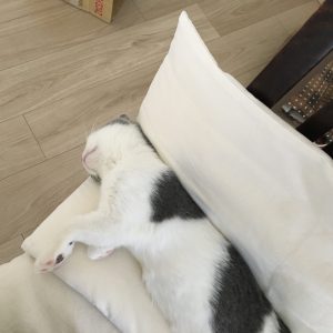 デカい家具が入れ替わってどんな反応をするんだろう…と心配しましたが、別になんてことないみたいです。熱心に匂いを嗅いだ後は、横たわって「ふー」という顔をしていました。