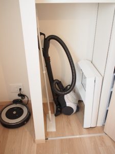 今のマンションを買ったとき、掃除機を収納できるスペースをクローゼットの中に確保できるよう設計変更をしました。