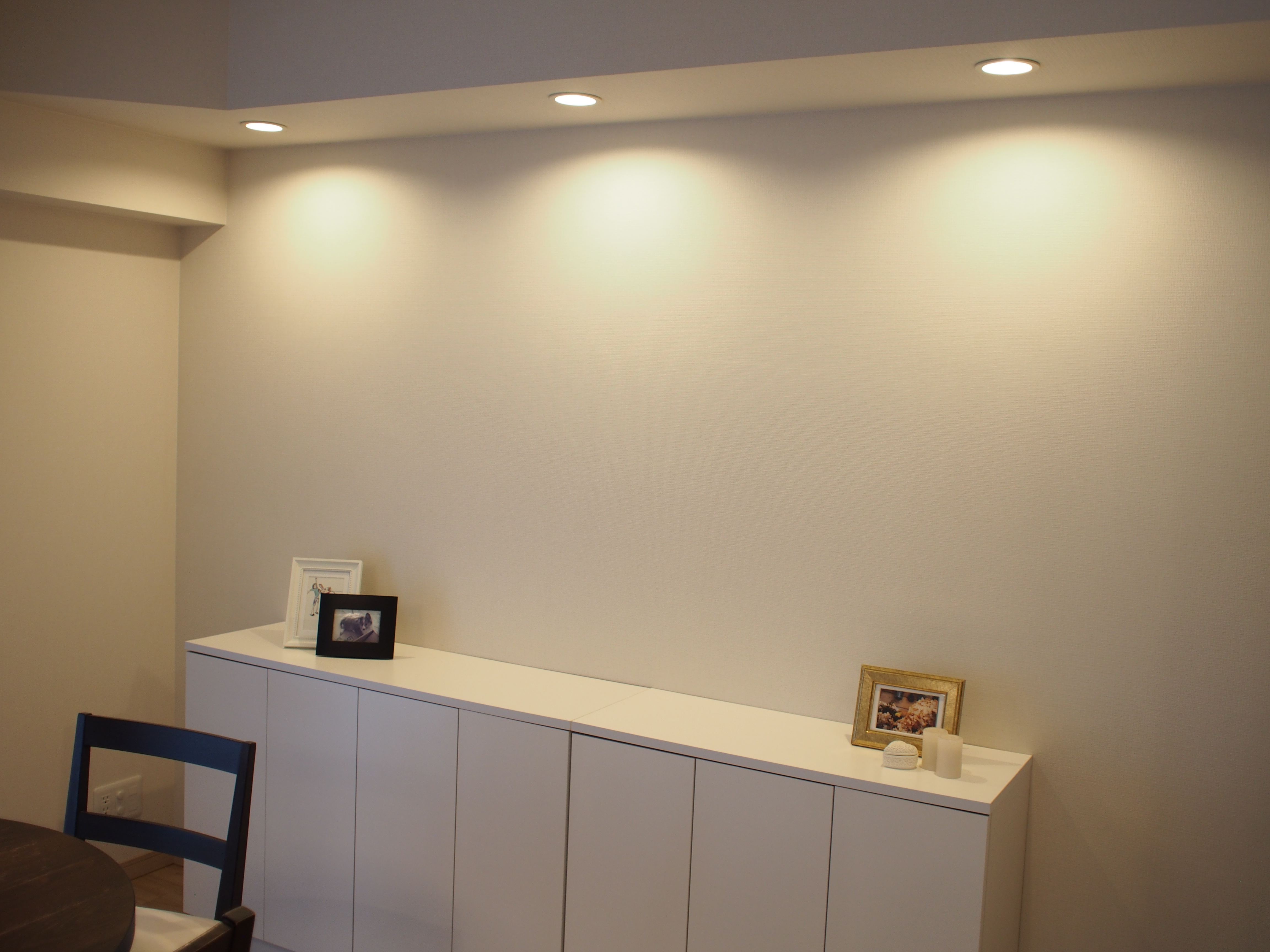 ダイニングの壁にはダウンライト。