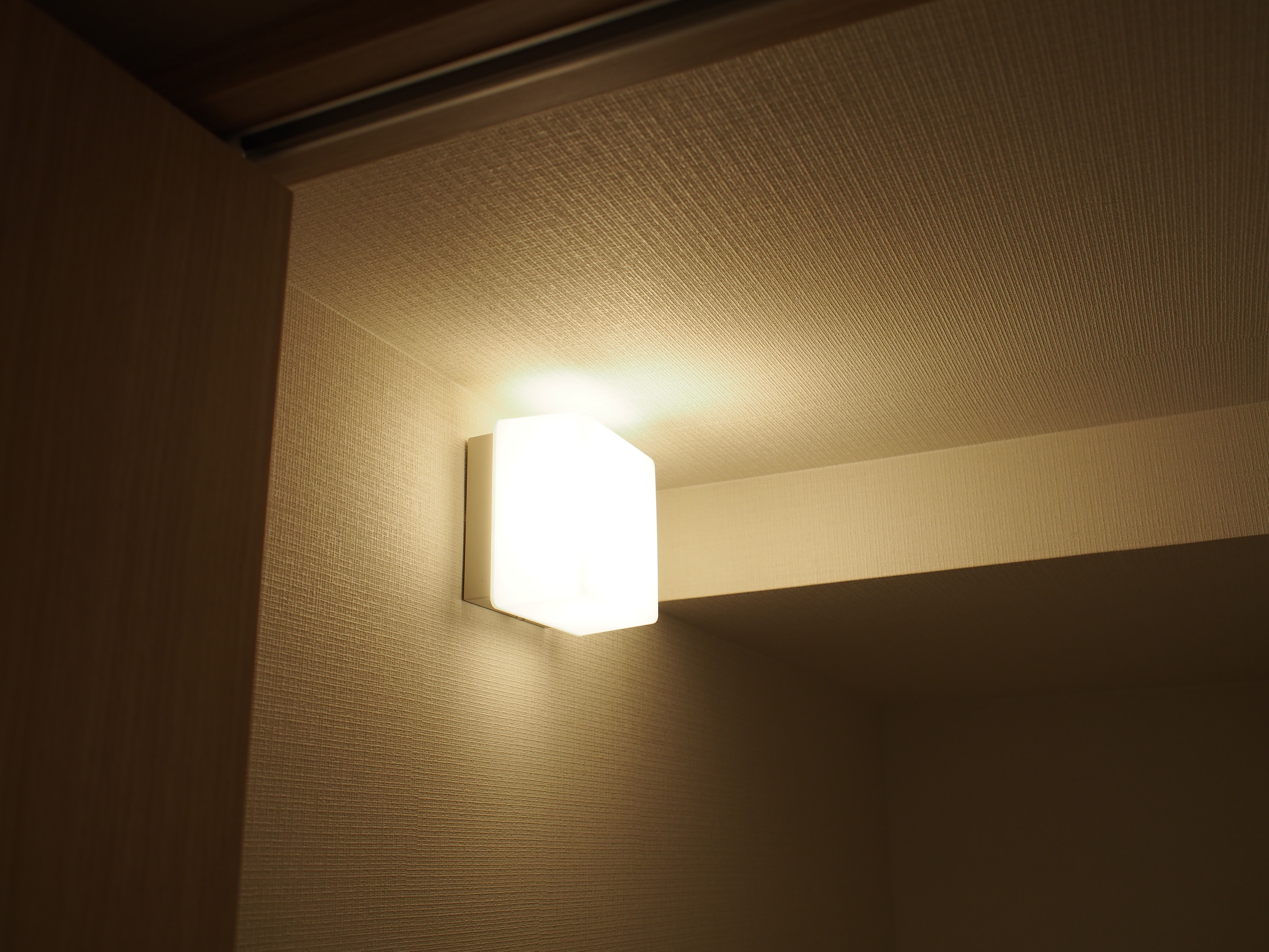 なんとワタシ、ひとり暮らしを始めてから自宅にブラケットライトがあるのってこれが初めてです(風呂を除く)。それが廊下でもなくダイニングでもなく物入とは…。