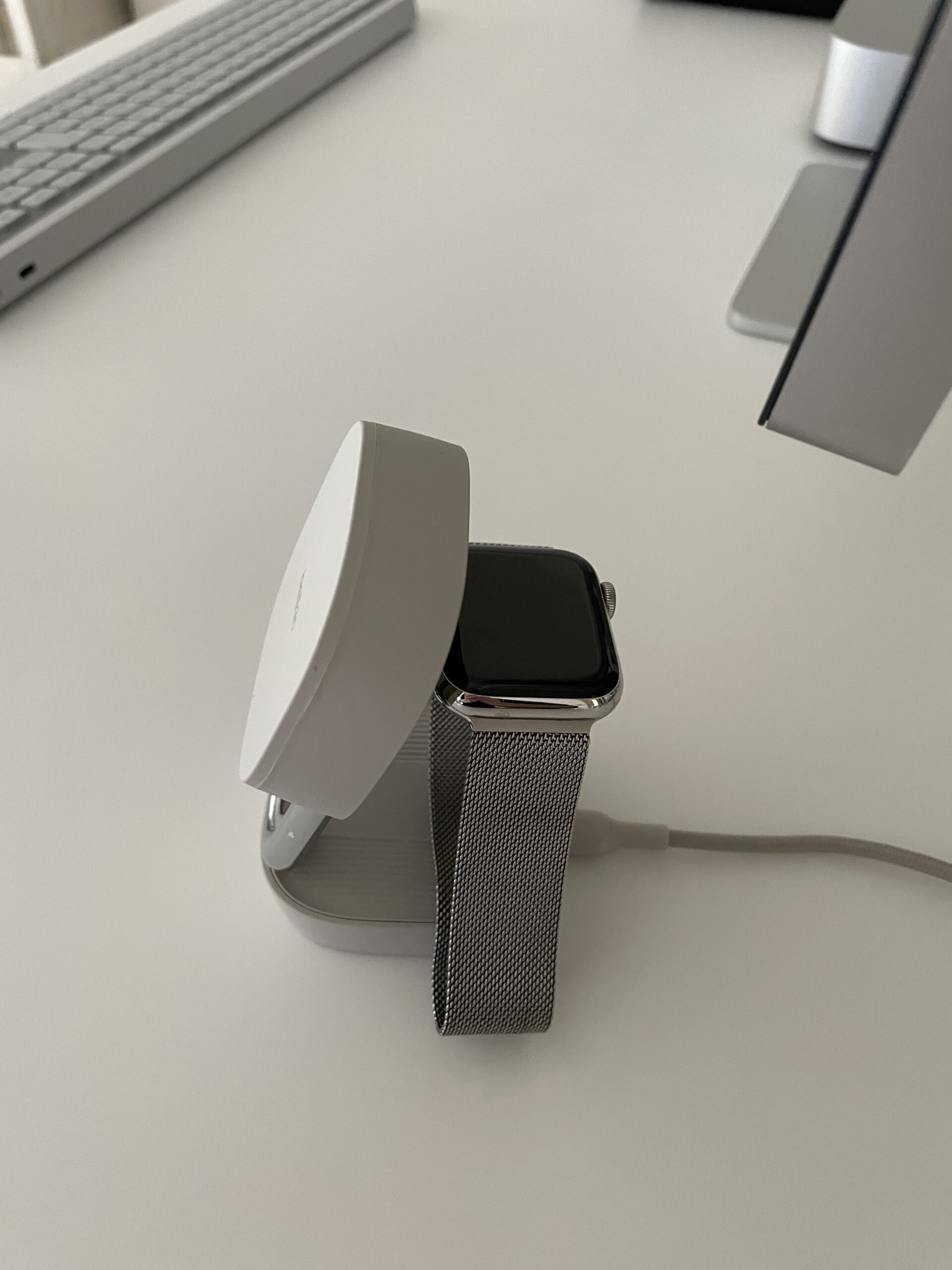 ただ、件の充電ステーションにはLightningケーブルとApple Watch用の充電ケーブルが用意してあるだけで、AirPodsとApple Watch両方を充電したいときにちょっと困ることもなくはないのです。