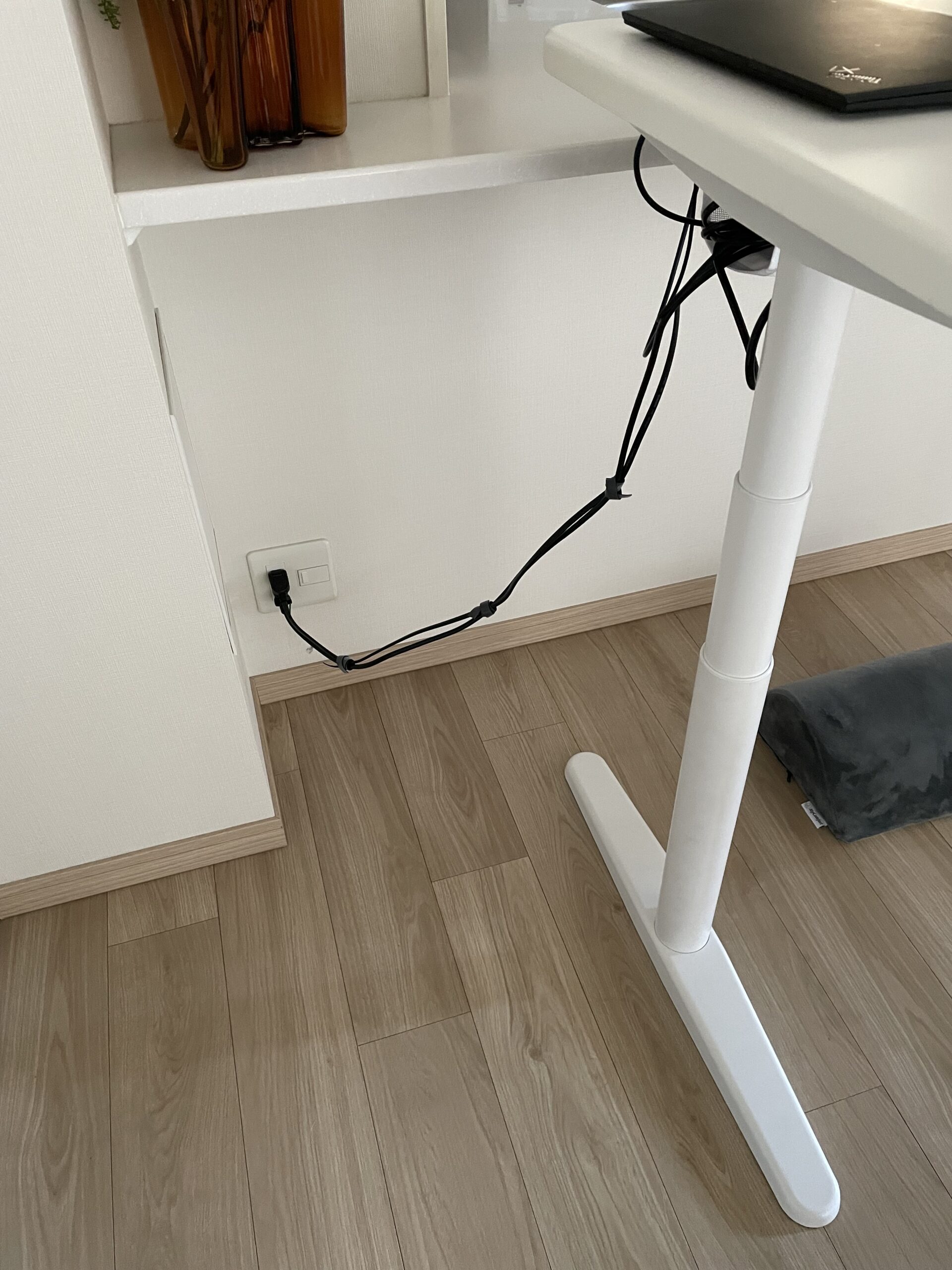 デスクの昇降モーターのケーブルと、電源タップに繋がるケーブルです。