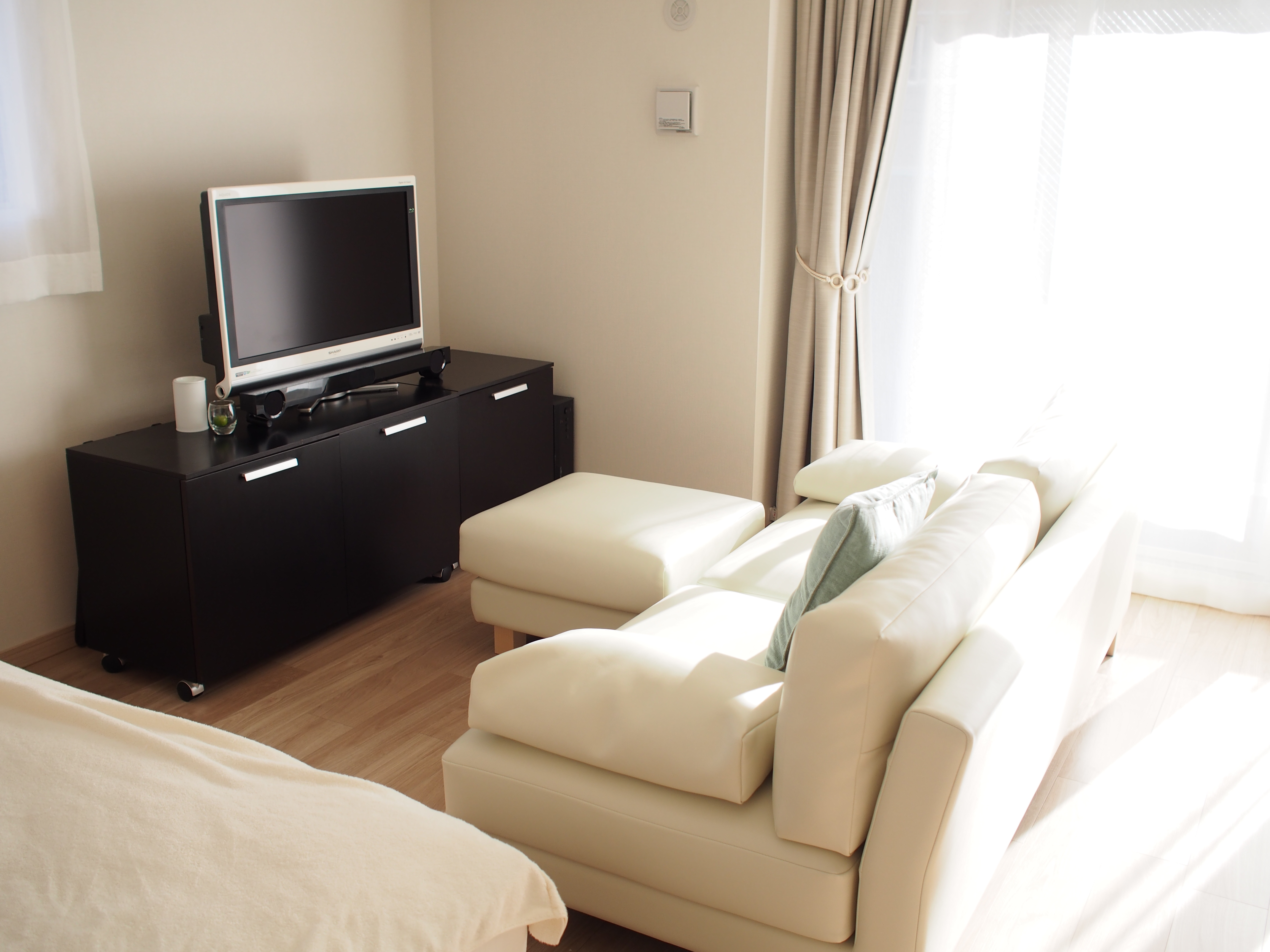 ソファはこの向きじゃないとテレビを観るときに不便。