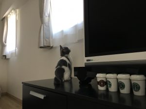 ブリ男がテレビ台や窓枠に乗れるようになってから、彼がテレビの前をドヤ顔で歩く度にふっさふっさと落ちる白い毛。半日掃除をしなかっただけでスゴいことになります。