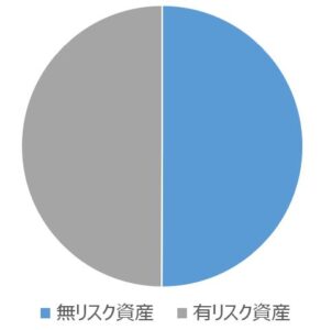 無リスク資産(現金など)とリスク資産(株など価額や為替で元本割れの可能性があるモノ)の比率がほぼ半々になりました。