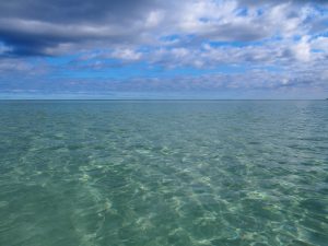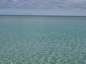 珊瑚が砕けた真っ白の砂が遠浅の海に溜まっていて、潮が引くと白いサンドバーが浮き上がります。