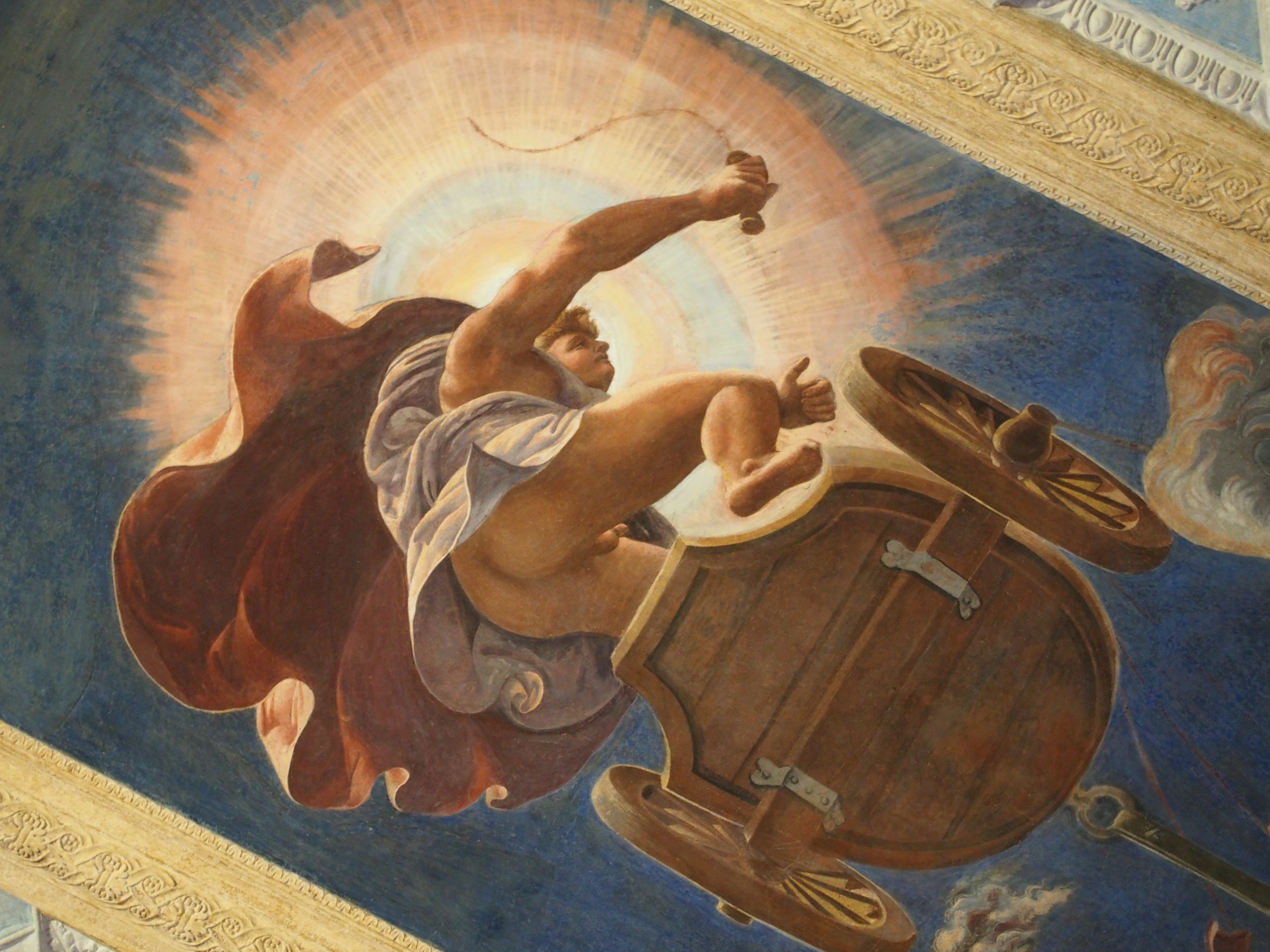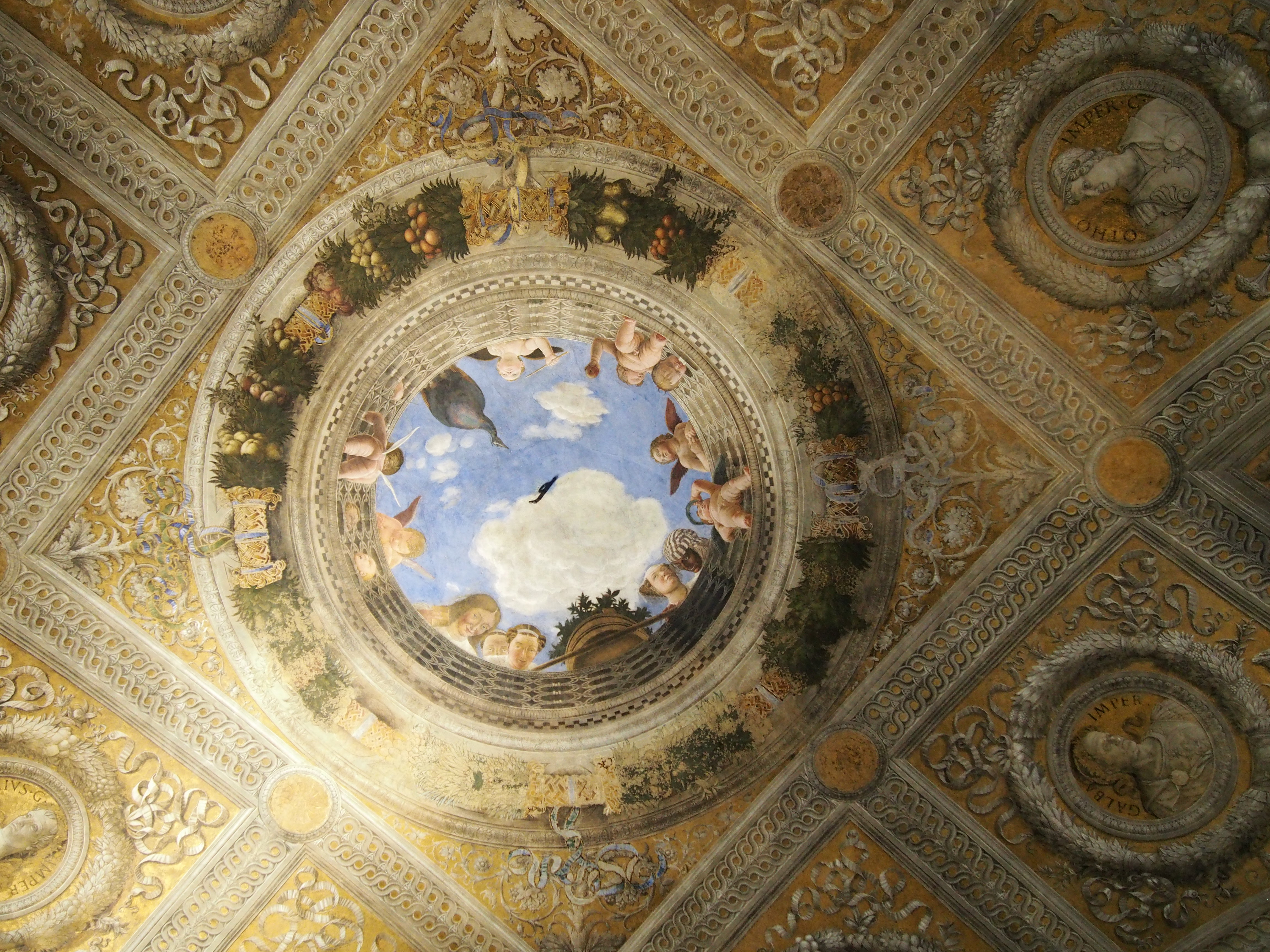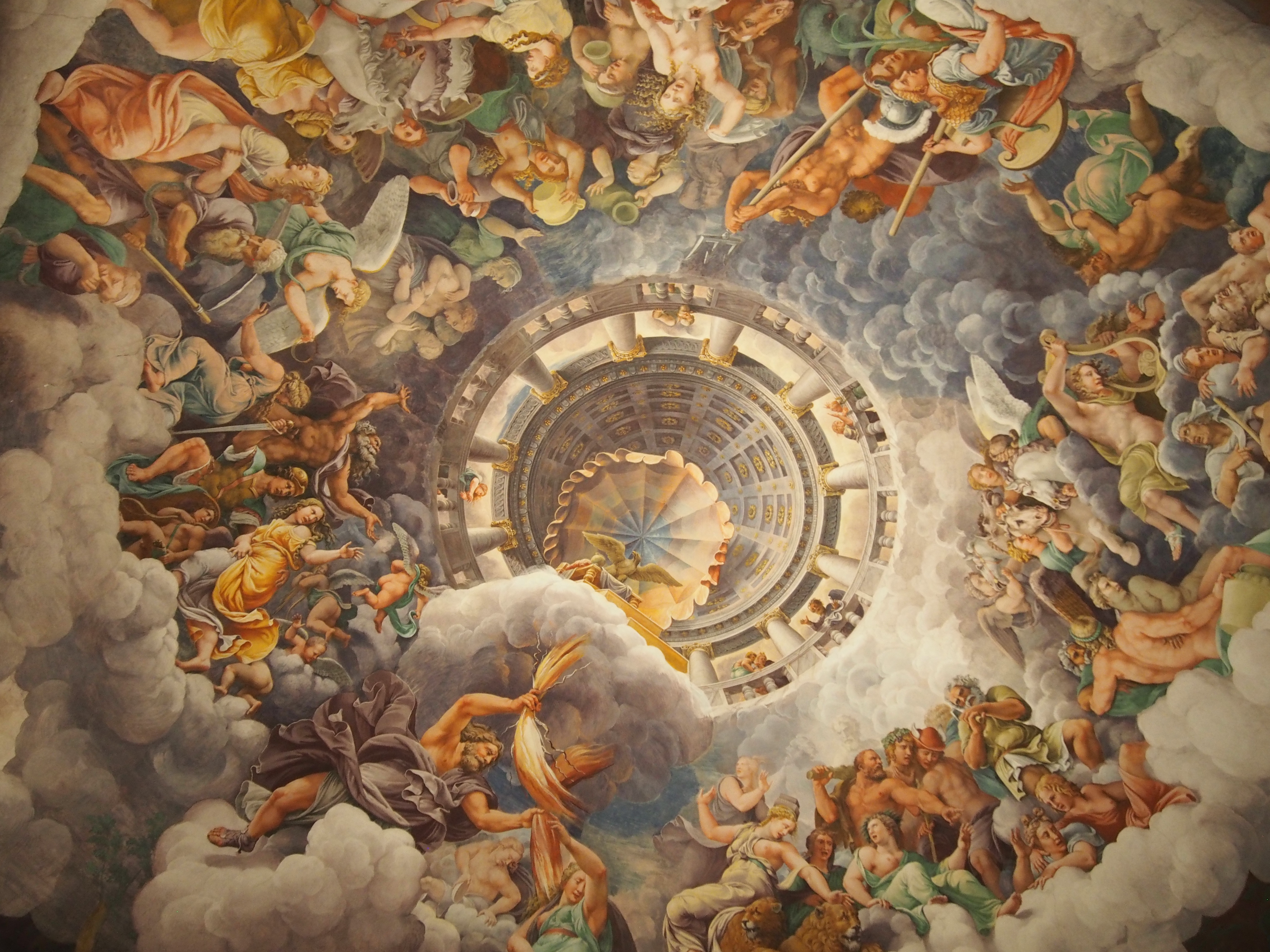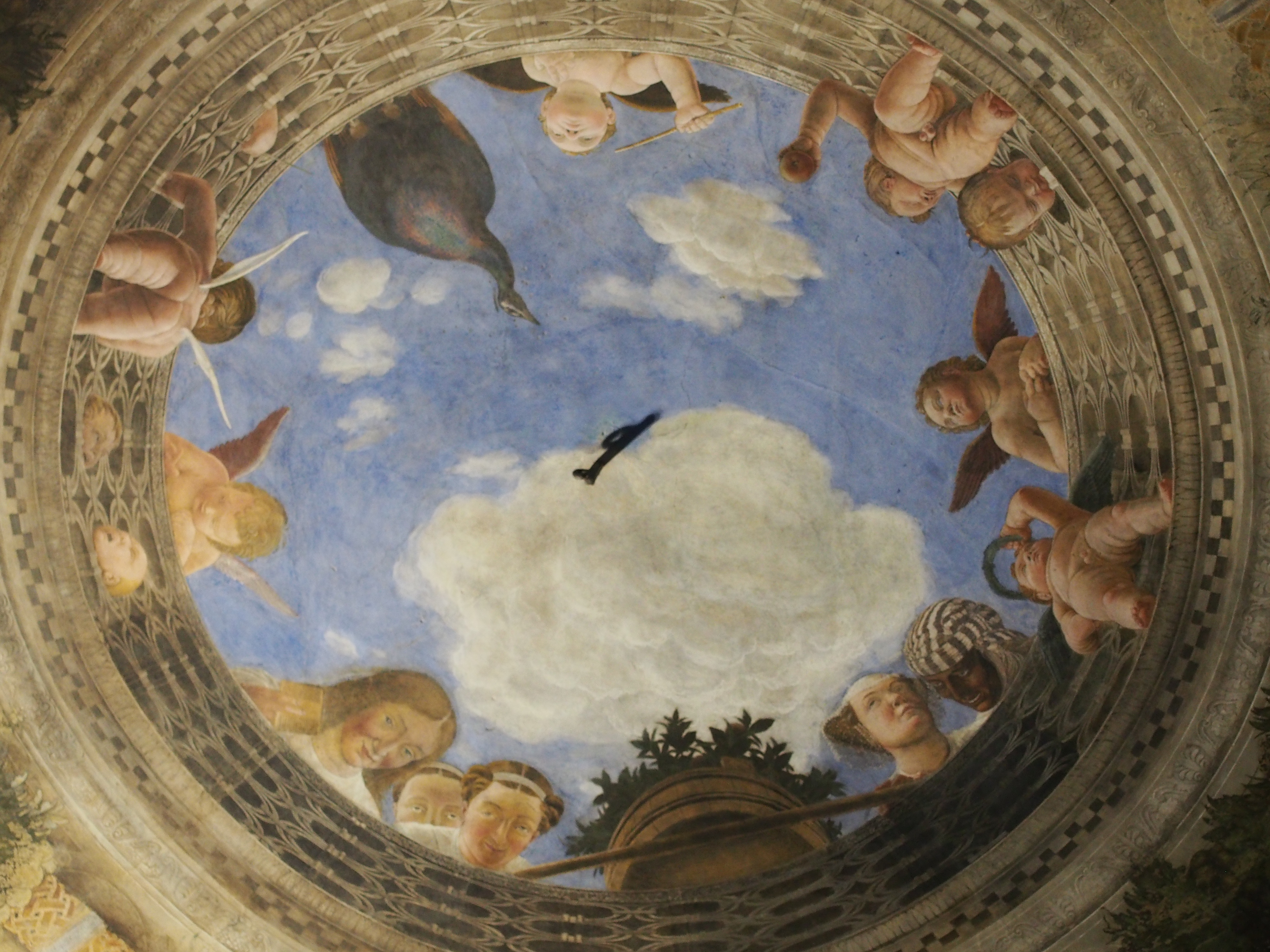 写真だとよくわかんないけど、天井と壁すべてにひとつの絵が描かれています。中に居る人間は絵の世界に入り込んでしまったような錯覚に陥る。